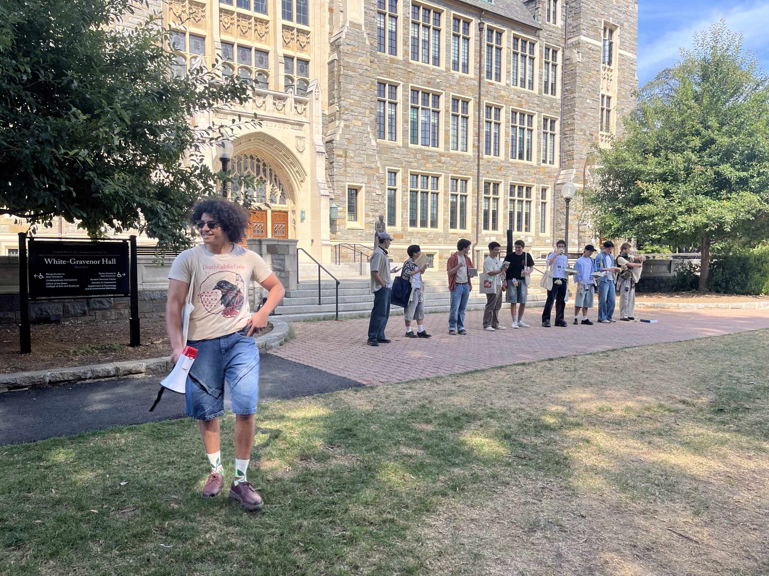If your walks to class haven’t been bombarded with flyers covered in “WHIMSY” in the last few months, you may be living under a rock. This initiative for increasing silliness on campus was started by Nick Hasbun (CAS ’28), who launched himself into the campus spotlight on Sept. 14 when he debuted his performative male contest on the steps of White-Gravenor Hall.