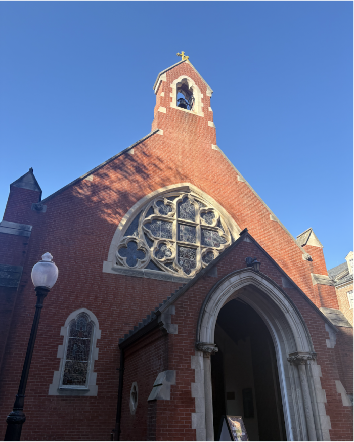 Behind the clock and seal of Healy Hall stands a little brick chapel built in 1893, bringing Hoyas together for decades. Since its dedication, Dahlgren Chapel has united generations of alumni in wedding celebrations, and for many, it has come to symbolize how Georgetown impacts the people who pass through it.